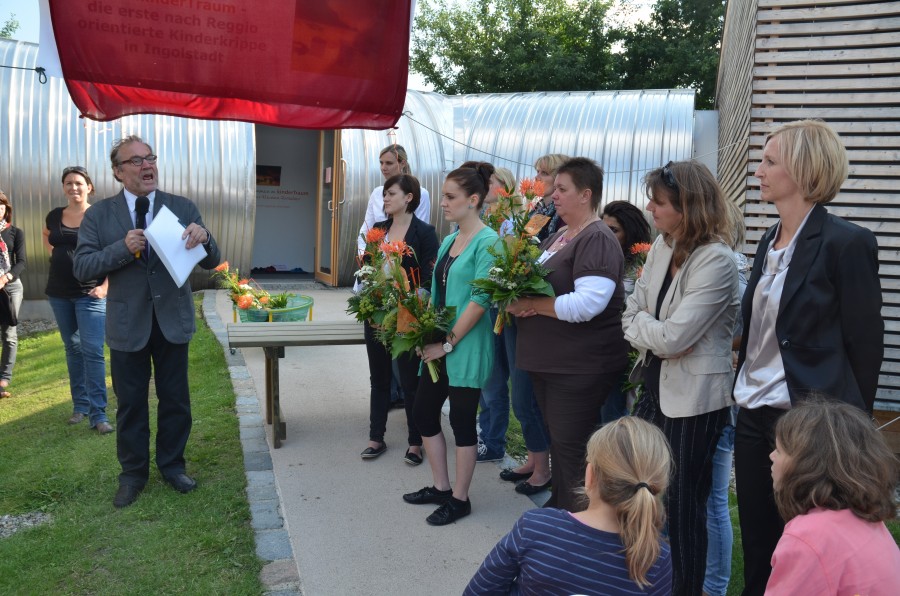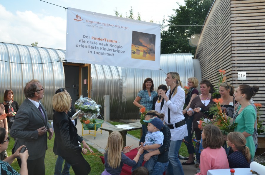Mittwoch, 06. Juli 2011 Am 29.06.2011 erhielt der kinderTraum der bürgerhilfe ingolstadt KiTa GmbH von Prof. Tassilo Knauf von Dialog Reggio e.V. als erste Kinderkrippe in Ingolstadt und der Region das Zertifikat überreicht. Die Reggiopädagogik stammt aus Norditalien und ist von der UNESCO zur weltbesten Vorschulpädagogik ausgezeichnet worden. Um diese Auszeichnung zu erhalten, musste das Team des kinderTraums unter Leitung von Frau Tanja Krippner, viele Anforderungen erfüllen. Zurück |