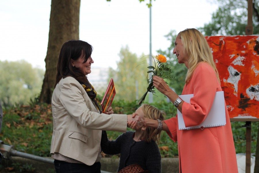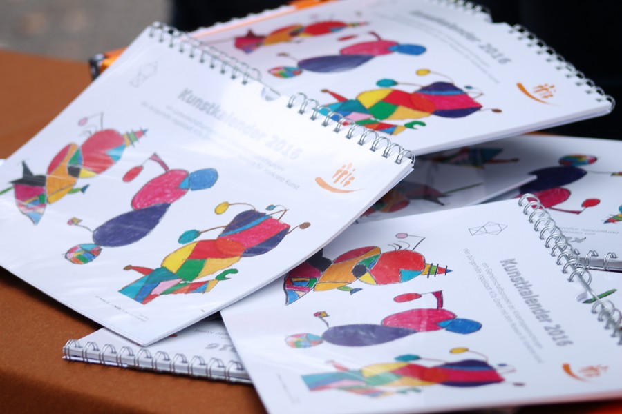 Montag, 28. September 2015 Erstmalig hat die bürgerhilfe ingolstadt KiTa GmbH gemeinsam mit allen neun Kitas einen Kinder-Kunstkalender gestaltet. Am Sonntag, den 27. September wurde das neuartige Projekt im Museum für Konkrete Kunst offiziell präsentiert. Nach der Begrüßung durch die Museumsdirektorin Dr. Simone Schimpf stellte Sabine Pfeffer, Geschäftsführerin der bürgerhilfe ingolstadt KiTa GmbH, das Projekt vor und begann mit dem berühmten Zitat von Pablo Picasso: „Als Kind ist jeder ein Künstler." Kinder aller Altersklassen haben am Kunstkalender mitgewirkt, von den Kleinsten in den Krippeneinrichtungen bis zu den Schulkindern im kinderHort. Außergewöhnliche Techniken wie Wasserbomben und Salatschleudern kamen zum Einsatz und die Kinder wagten sich auch an große Künstler wie Leonardo da Vinci oder Joan Miró. „Herrlich, wie unterschiedlich Kinder Kunst interpretieren", sagte Sabine Pfeffer. Höhepunkt der Veranstaltung war die Versteigerung ausgewählter Kunstwerke, moderiert von Ralf Piegsa, Vorstand des bürgerhilfe e.V. Unter den Hammer kamen Interpretationen von Friedensreich Hundertwasser, Joan Miró und Leonardo da Vinci. Sabine Pfeffer selbst ersteigerte die „Mona Lisa", welche die fünfjährige Amara mit grüner Wiese und blauem Himmel gemalt hatte. Ein regelrechtes Bieterduell lieferten sich die Mutter und die Oma des kleinen Max, der zusammen mit einem anderen Kind aus der kinderInsel eine großformatige Leinwand zum Thema „Musik" gestaltet hatte. Das letzte Bild sorgte für Spannung und wurde blind versteigert. Den Zuschlag bekam Aleksandra Ostermeir, Mutter von Simon aus dem kinderHaus, die sich sehr über „Die rote Sonne" von Joan Miró freute. „Wir freuen uns, dass so viel Geld zusammengekommen ist", bedankte sich Ralf Piegsa. Der Erlös komme vollständig den betreuten Kindern zugute, betonte er weiter. Der Kunstkalender ist ab sofort in den neun Kitas der bürgerhilfe ingolstadt KiTa GmbH erhältlich und kann unter info∂buergerhilfe-ingolstadt.de bzw. 0841/17309 bestellt werden. Mit dem Kauf unterstützen Sie eine gute Sache. Zurück |