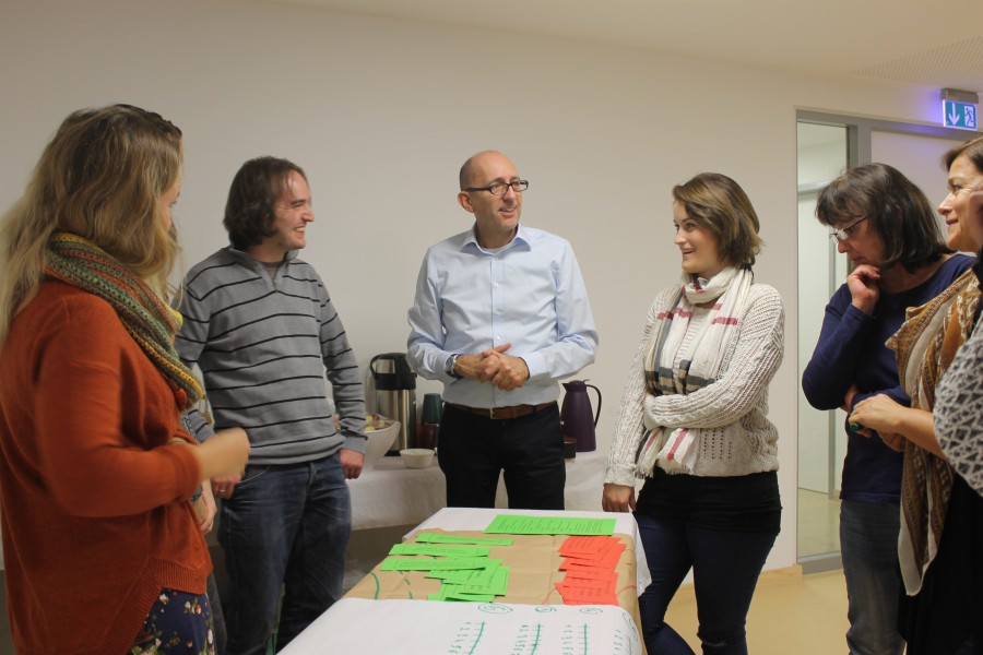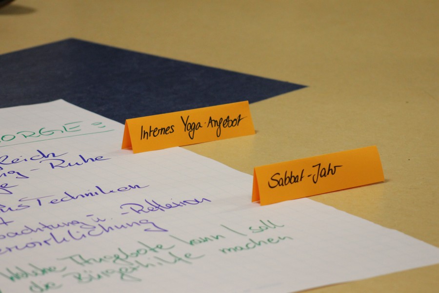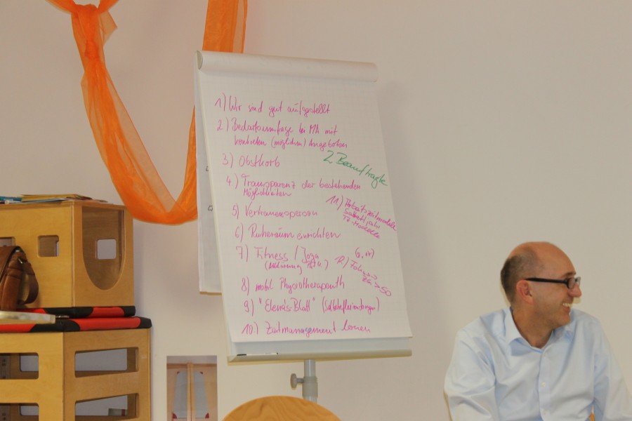 Dienstag, 10. November 2015 Die Gesundheit und das Wohlbefinden ihrer Mitarbeiterinnen und Mitarbeiter liegt der bürgerhilfe ingolstadt KiTa GmbH sehr am Herzen. Unter dem Motto „Mach mit!" plant das Unternehmen derzeit ein Programm zur betrieblichen Gesundheitsförderung. Da die Maßnahmen auf die individuellen Arbeitsbedingungen, Bedürfnisse und Wünsche zugeschnitten sein sollen, fand unter der Leitung des erfahrenen Beraters und Kommunikationstrainers Robert Harfold ein Workshop zum Thema statt. Teilgenommen haben Vertreter aus allen Kitas und aus allen Berufsgruppen, von Erziehern und Kinderpflegern über Verwaltungsangestellte bis hin zu Köchinnen und Hausmeistern. Aus dem Workshop sind nicht nur konkrete Maßnahmen und ein erstes Konzept entstanden, sondern es hat sich auch eine motivierte Arbeitsgruppe gebildet. Zurück |