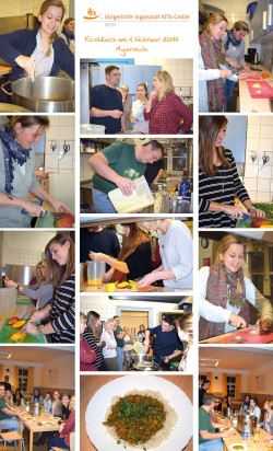 Mittwoch, 01. Februar 2017 Am 1. Februar 2017 fand der erste Kochkurs für Mitarbeiter zum Thema Ayurveda statt. Organisiert wurde der Kurs vom BGM Team der bürgerhilfe mit der kinderKüche. Unter Anleitung von Herrn List wurde den Teilnehmer die ayurvedische Kochkunst näher gebracht. Der nächste Kochkurs mit dem Thema Vegan findet am 23. Februar 2017 statt. Zurück |