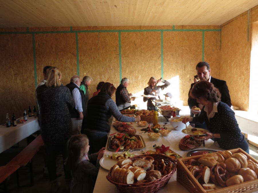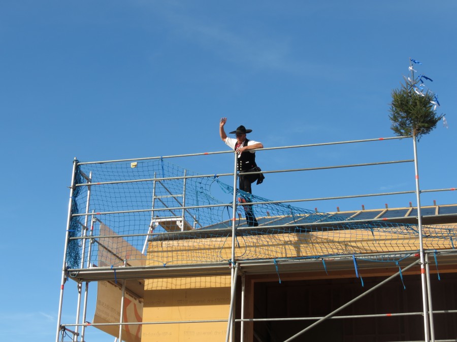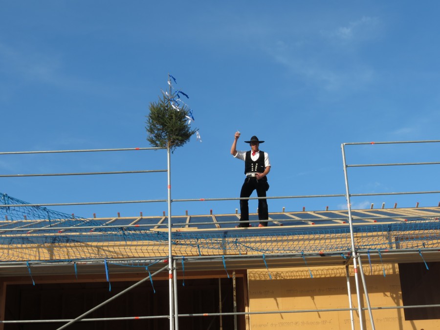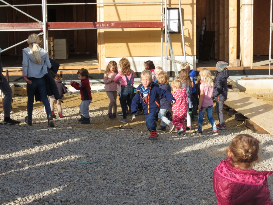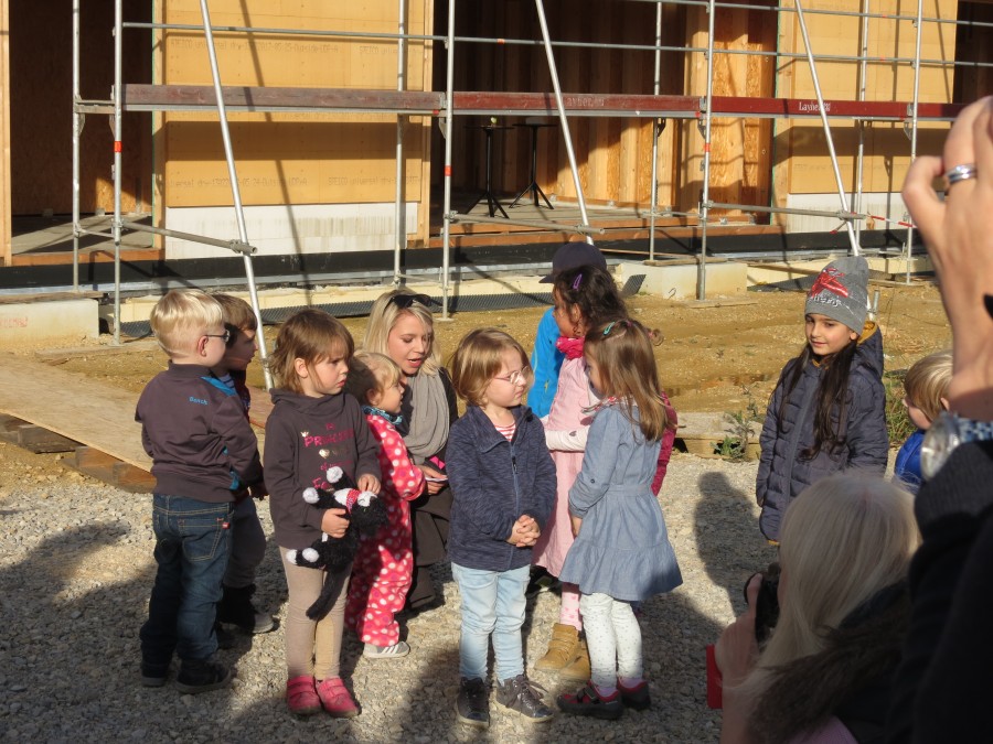 Freitag, 13. Oktober 2017 Am 13.10.2017 wurde Hebauf gefeiert für das neue kinderGlück in Wettstetten. Die kinderGlück Kinder haben sogar zum Richtfest einen eigenen Richtspruch: "Das Dach ist fertig, bald folgt der Rest, darum feiern wir heute dieses Fest. Nun steht unser Haus, und wir Kinder lachen, denn bald werden wir es zu unserem Spielhaus machen. Vielen Dank wollen wir heut' sagen, wir werden viel Platz zum Spielen haben. Unserem Haus der Sprache wünschen wir das Beste, glückliche Kinder und lachende Gäste". Es "regnete" Süßigkeiten für die "Kleinen" und danach konnten sich auch die "Großen" über ein reichhaltiges Buffet freuen. Zurück |