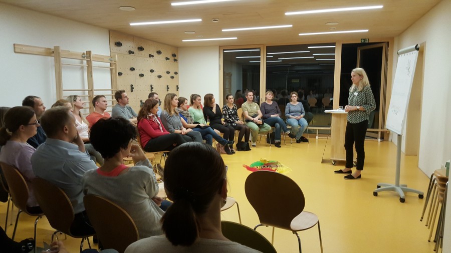Donnerstag, 18. Oktober 2018 Am Donnerstag, den 18. Oktober fand in unserem neuen kinderGlück die erste Elternbeiratswahlparty unter dem Motto „Herbstzauber" statt. Gewählt wurden 11 Elternbeiräte für das kommende KiTa-Jahr 2018/2019. Als Einstieg gestalteten die Eltern gemeinsam eine Weltkarte aus Glas, auf welcher sie ihren Geburtsort markierten. Die Weltkarte wird im Eingangsbereich des kinderGlücks aufgehängt und zeigt die Vielfalt der unterschiedlichen Kulturen in unserem „Haus der Sprache". Die kinderKüche der bürgerhilfe ingolstadt KiTa GmbH verköstigte die Eltern mit einer schmackhaften Kürbis-Ingwer-Suppe, passend zum Motto des Abends. Zurück |
