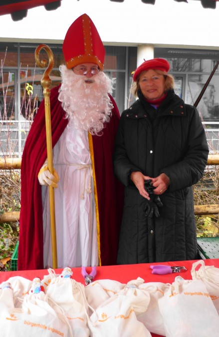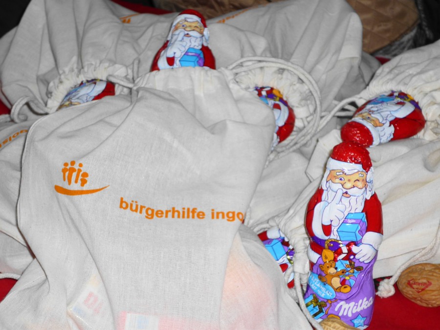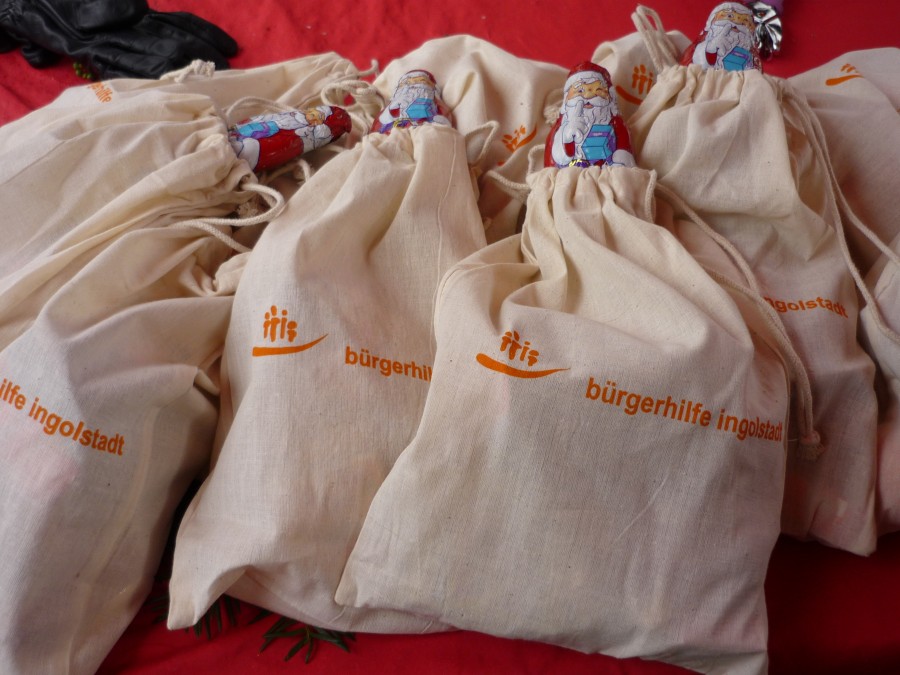 Mittwoch, 05. Dezember 2012 Auch in diesem Jahr fand am Mittwoch, den 05.12.2012 von 10:00 bis 12:00 Uhr und von 13:30 bis 16:00 Uhr die Nikolausaktion der bürgerhilfe ingolstadt e.V. statt. Bedürftige mit Bezugsausweis konnten sich bei der Ingolstädter Tafel, im Zusammenhang mit der Warenausgabe die Nikolaussäckchen abholen. Bereits am Vorabend wurden die 500 Säckchen mit Nüssen, Lebkuchen, Mandarinen, Äpfeln und natürlich mit einem Nikolaus und Süßigkeiten befüllt. Die Nikolausaktion der bürgerhilfe gibt es schon seit über dreißig Jahren, heuer zum achten Mal in Zusammenarbeit mit der lngolstädter Tafel.