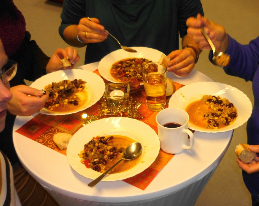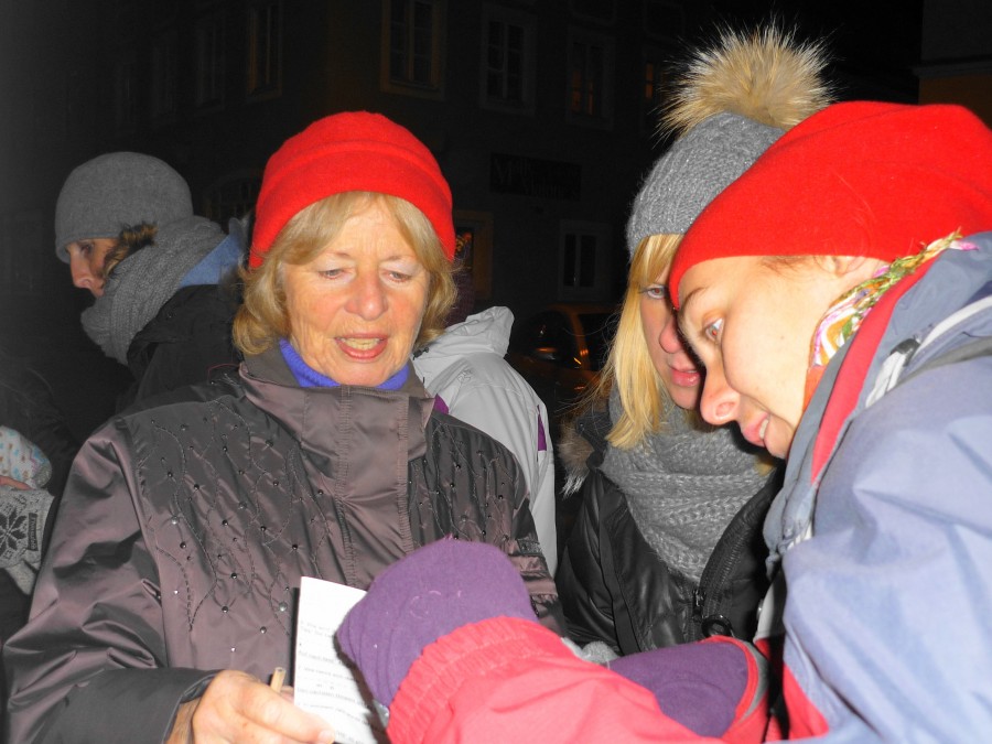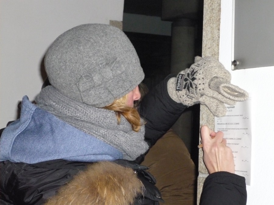 Donnerstag, 13. Dezember 2012 Von der kinderVilla aus starteten wir nach einer kurzen Einweisung zu unserer ersten Chrismas-Geocachingtour duch Ingolstadt. Nach ca. zwei Stunden wurde der Schatz von allen Teilnehmern gefunden. Anschließend wärmte ein Glas Glühwein oder die Chilli con Carne die kalten Glieder. Es gab natürlich auch Weihnachtsgeschenke und Dankesworte von der ersten Vorsitzenden, Frau Bettina le Maire und der Geschäftsführerin, Frau Sabine Pfeffer. Zurück |