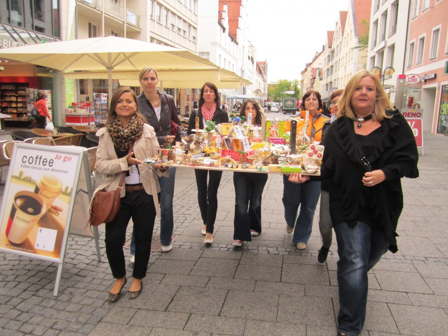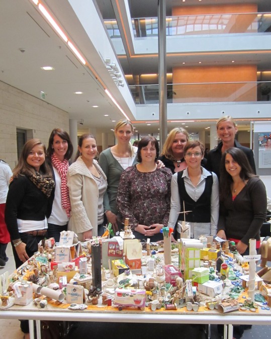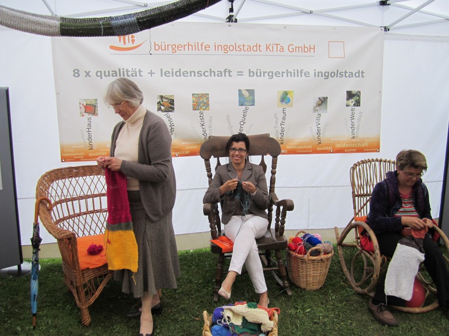 Samstag, 23. Juli 2011 Getreu dem Motto IngolstadtLandPlus KennenLernen – ZusammenWachsen, fand am 23. Juli 2011 im Klenzepark das Lernfest DER REGION INGOLSTADT statt. Viele Menschen der Region wurden durch interessante und spannende Mitmachaktionen für ein „ Lernen mit Spaß“ begeistert. Wir, die acht Kindertageseinrichtungen der bürgerhilfe ingolstadt KiTa GmbH waren mit zwei Aktionen vertreten. - Ingolstadt und die Region strickt-macht alle mit - Wir bauen die Stadt mit Dir Um die Gemeinschaftsarbeit der Bürgerinnen und Bürger im Alter von 0 bis 99 Jahren wertzuschätzen, wollten wir das Kunstwerk nach dem Lernfest an einem öffentlichen, zentralen Ort präsentieren. Wir freuen uns sehr, dass wir die Sparkasse Ingolstadt für unser Vorhaben gewinnen konnten. Somit haben wir unser Ziel, etwas Bleibendes zu schaffen, an dem viele Menschen beteiligt waren erreicht.