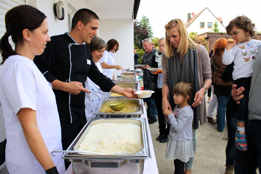 Dienstag, 30. September 2014 Zahlreiche interessierte Familien haben am Tag der offenen Tür die kinderKüche in Kösching besucht. Die Eltern hatten dabei die Gelegenheit, sich umfassend über das Konzept zu informieren und die Speisen zu probieren, die auch ihre Kinder täglich bekommen. Die kinderKüche unter Leitung des erfahrenen Küchenchefs Stephan List beliefert mittlerweile seit zehn Monaten die neun Einrichtungen der bürgerhilfe ingolstadt mit frischem, selbst gekochtem Essen. Die bürgerhilfe ingolstadt verzichtet so bewusst auf ein Tiefkühl-/Aufwärmsystem und bleibt von Dritten unabhängig. Da eine vollwertige und ausgewogene Ernährung maßgeblich zur Entwicklung der Kinder beiträgt, sind gesunde Speisen fester Bestandteil des pädagogischen Konzepts der bürgerhilfe ingolstadt sowie erklärtes Ziel der kinderKüche. Daher kocht das Team um Stephan List nach den Empfehlungen des aid und verwendet vorwiegend frische, nachhaltig erzeugte und saisonale Lebensmittel aus der Region.