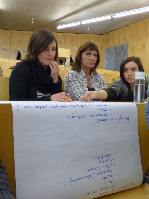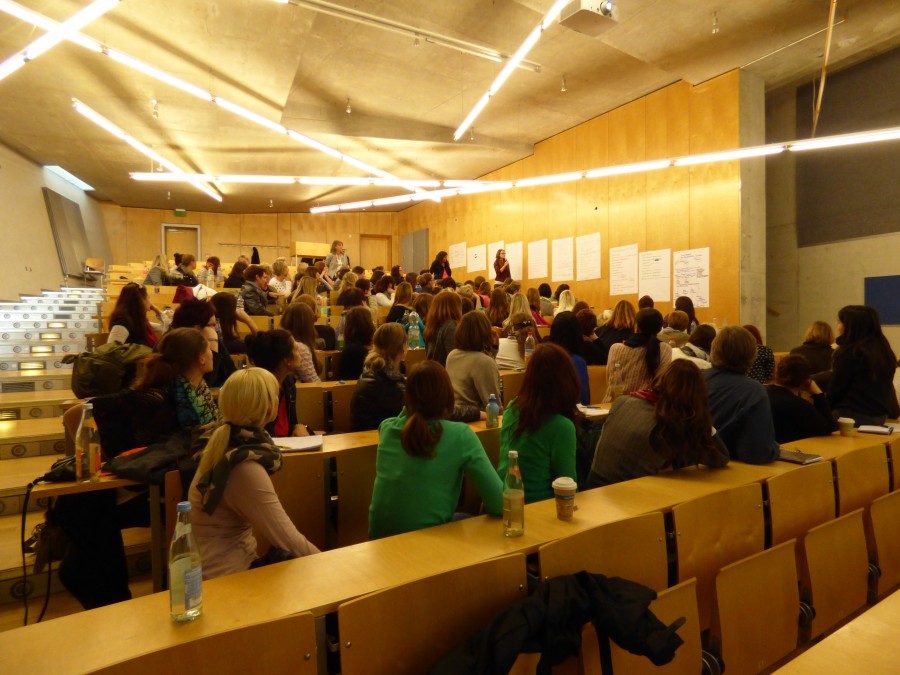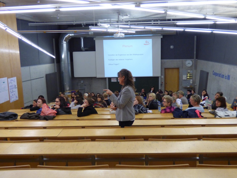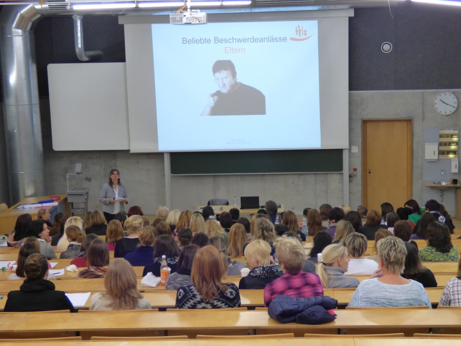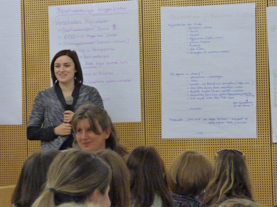 Mittwoch, 12. November 2014 Der Fachvortrag der Diplom-Psychologin Bettina le Maire stellte die pädagogisch-psychologischen sowie rechtlichen Grundlagen der Partizipation in ihren verschiedenen Ausprägungen vor und informierte über Beschwerdeanlässe und die Äußerungsformen von Beschwerden. Die Bedingungen für Beschwerdesysteme wurden aufbereitet und immer wieder der Bogen in die pädagogische Praxis und die Beschwerdemöglichkeiten für Kinder und Eltern gespannt. Nach einer angeregten Diskussion fand eine Vertiefung des Themas in mehreren Arbeitsgruppen vor allem im Hinblick auf die Umsetzung in der Praxis statt. Unsere Mitarbeiterinnen waren sehr engagiert dabei und konnten viele wichtige Erfahrungen aus ihrem pädagogischen Alltag beisteuern. In der Veranstaltungsevaluation gaben fast alle der 90 Teilnehmerinnen an, etwas von den Fortbildungsinhalten in der Praxis umsetzen zu wollen und zu können.