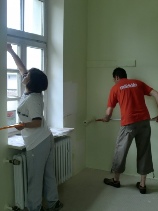 Montag, 02. Juni 2014„Alles neu macht der Mai" - dieses Motto haben wir uns als Vorbild genommen und den Gruppenraum des kinderHortes mit tatkräftiger Unterstützung unserer Eltern neu gestrichen. Wir haben zuerst alle alten und nicht mehr brauchbaren Möbel aussortiert, entsorgt und dann geplant wie die Neugestaltung aussehen soll. Danach haben wir mit den Eltern zusammen neu gestrichen und die neuen Möbel bestellt und aufgebaut. Nun fehlen noch ein paar Kleinigkeiten, aber auch diese kommen bald. Die Kinder haben sich sehr gefreut und finden den neuen Gruppenraum sehr schön und genießen es, ihn sich „neu zu erobern".