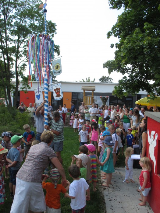 Unser kiKi-Baum wurde neu aufgestellt. Begrüßt haben wir ihn mit dem ki-Ki-Lied.