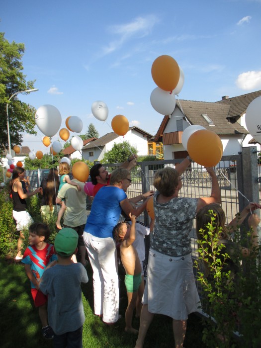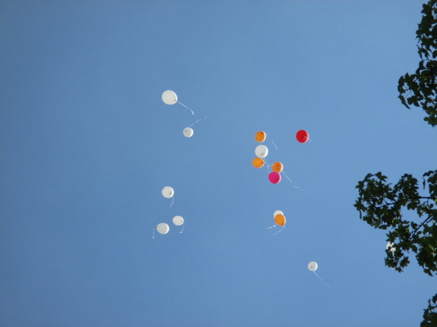 Zum Schluss haben wir die Luftballons in die Luft steigen lassen.