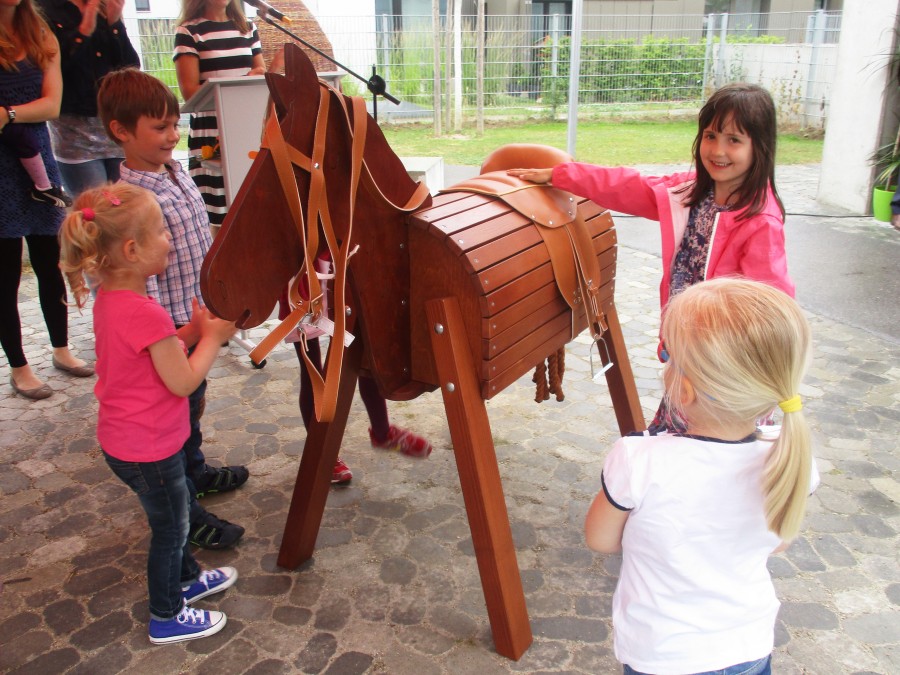 Als einer der Höhepunkte enthüllte Jasna Sijamhodzic, Leiterin der kinderWelt, gemeinsam mit den Kindern ein neues Spielgerät für den Garten. Die Kinderaugen leuchteten, als sie das neue hölzerne Pferd erblickten. „Das Pferd steht für Kraft, Bewegung und Leidenschaft", erklärte Jasna Sijamhodzic, „und somit auch für die kinderWelt."