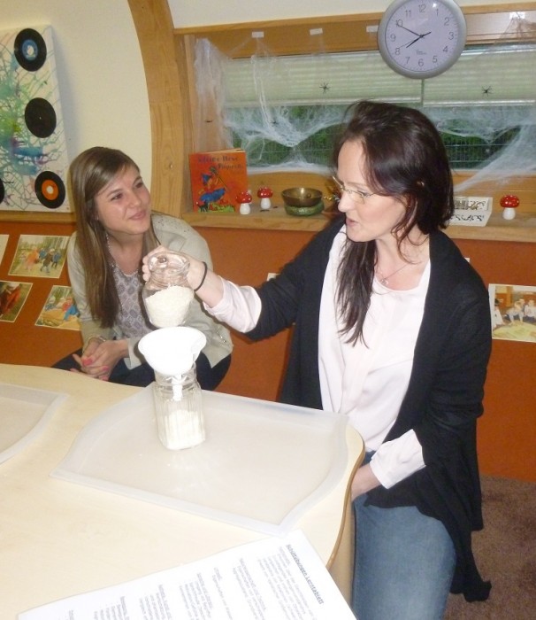 Außerdem hatten unsere Eltern die Möglichkeit selbst in die Rolle der Kinder zu schlüpfen und im kinderTraum verschiedene Forscherstationen auszuprobieren.