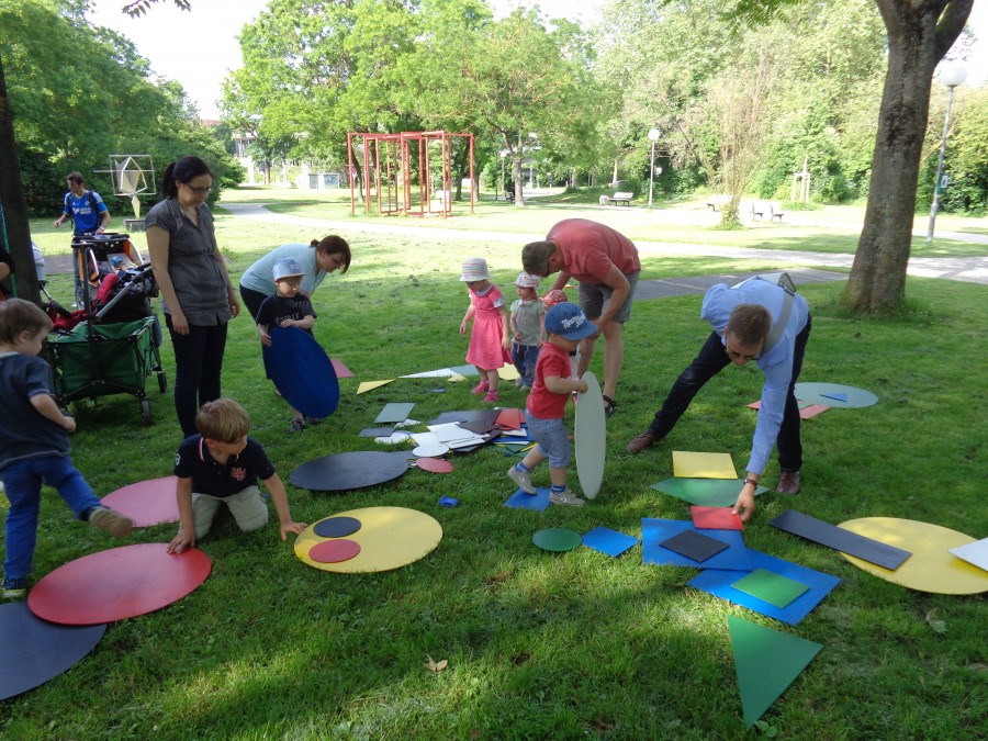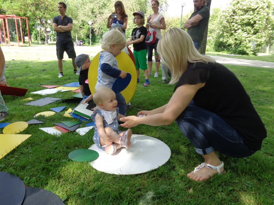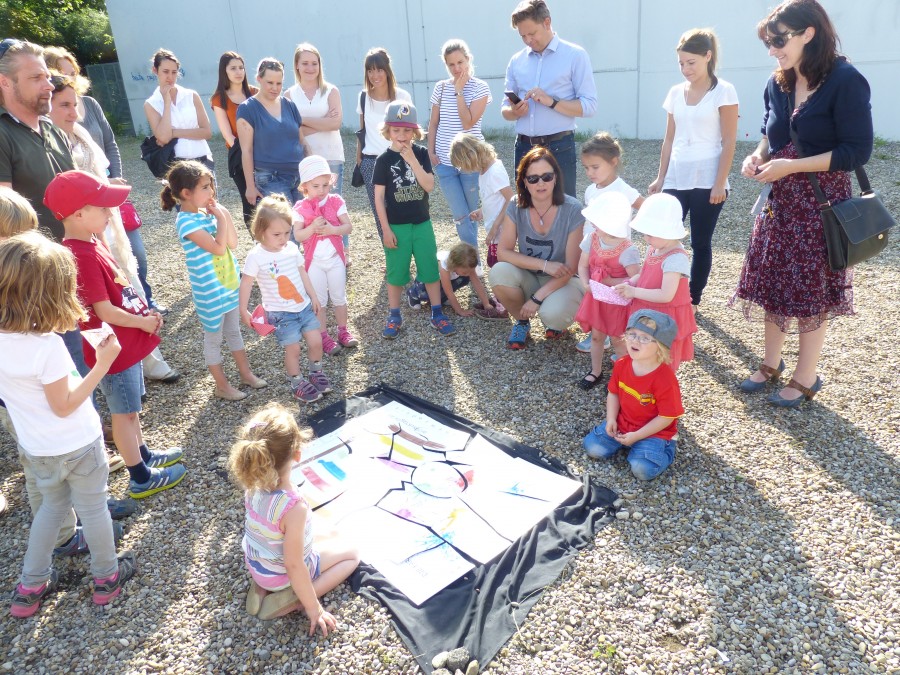 Mittwoch, 13. Juli 2016Im Rahmen unseres Hausprojektes „Wie entsteht Kunst?", entführte das Team des kinderHauses, Eltern und Kinder auf einen Irrweg durch die Innenstadt. Dabei mussten einige wissenswerte und praktische Aufgaben gelöst werden, sodass am Ziel eine besondere Überraschung gelüftet werden konnte. Die neuen Etagennamen „Pinselstriche" und „Farbenkleckse".