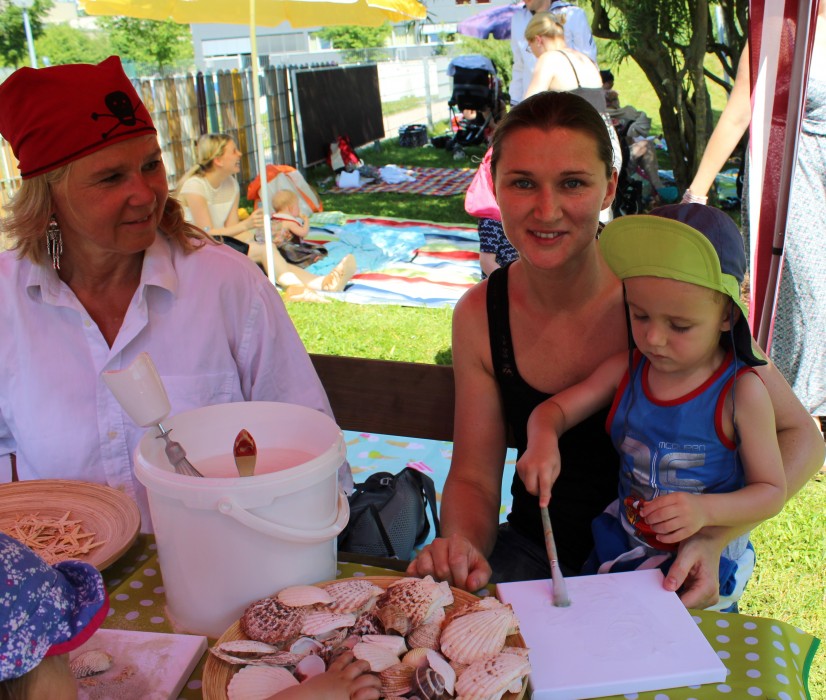 So konnten zum Beispiel schöne Leinwände mit Muscheln und Sand gestaltet und nach Goldmünzen im Sandkasten gesucht werden, oder manch mutiger Pirat ließ sich auch ein Tattoo aufkleben.