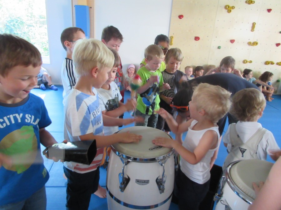 Zum Abschluss durften wir gemeinsam mit Bernd selbst Musik machen mit verschiedensten Trommeln. Das hat Riesenspaß gemacht!