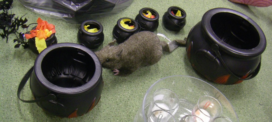 Schon bald „brutzelten" künstliche Spinnenbeine, Mäuseschwänze und Krötenschleim in der Hexenküche. In den kleinen Räumlichkeiten des kinderGlücks entstanden dunkle Höhlen und Nischen, überzogen von dicken Spinnennetzen. Anhand von zahlreichen Bilderbüchern holten sich die Kinder wissenswertes zu diesem Thema und träumten in der Welt der Magie und Zaubers. Das Märchen von Hänsel und Gretel faszinierte die Kinder wieder aufs Neue. Hexensprüche, Lieder, Ratespiele, Spinnenbilder und Verkleidungen durften natürlich auch nicht fehlen. In der Turnhalle des Gemeindekindergartens entstanden Bewegungsbaustellen für kleine und große Hexen und Hexenmeister.