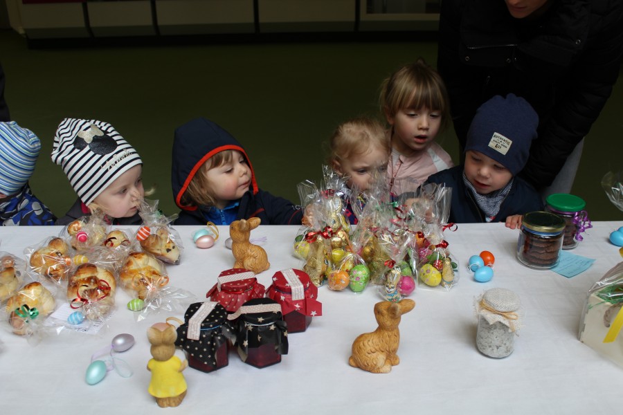 Auch selbstgebastelte Osterdekoration wurde von fleißigen Eltern und Kindern mit angeboten, welche sich ebenso wie die Süßigkeiten, großer Beliebtheit erfreuten.