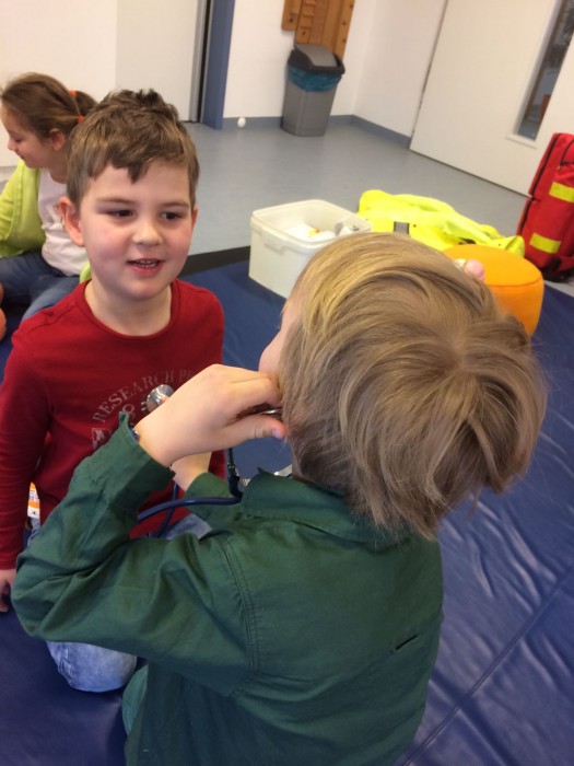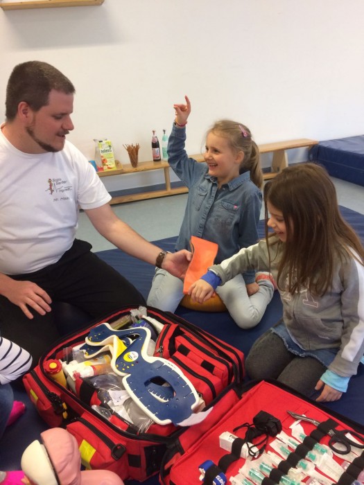 Sogar eine richtige Notfallsituation spielen wir durch und lernen dabei die stabile Seitenlage.