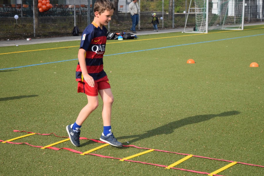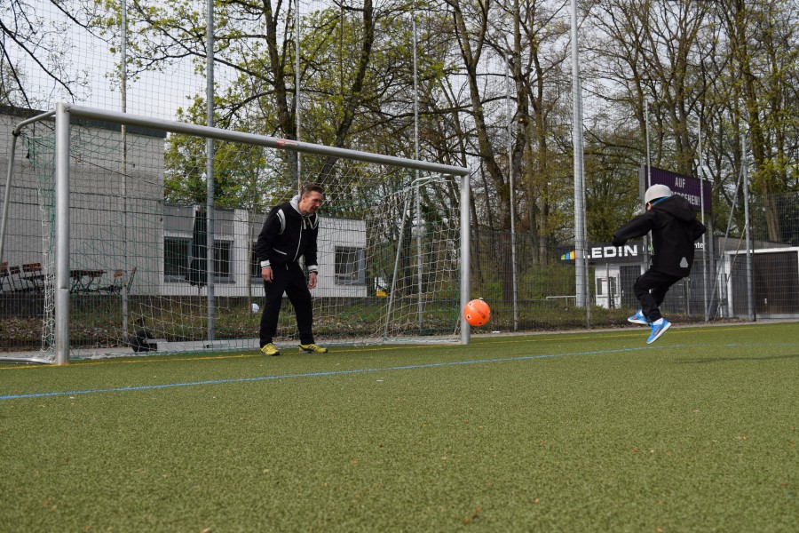 Als Nächstes beschäftigten wir uns mit den Fussballregeln. Diese probierten wir natürlich des Öfteren am nahegelegenen Fussballplatz aus. Unterstützt wurden wir dabei vom Papa eines Kindes aus der Krebsgruppe, einem Nachwuchs-Fussballtrainer. Die Kinder konnten ihr Talent an verschiedenen Stationen erproben und danach ihre Treffsicherheit im Elfmeterschießen beweisen. Diese Aktion fand in den Osterferien statt, so dass auch unsere Ferienkinder mitmachen konnten.