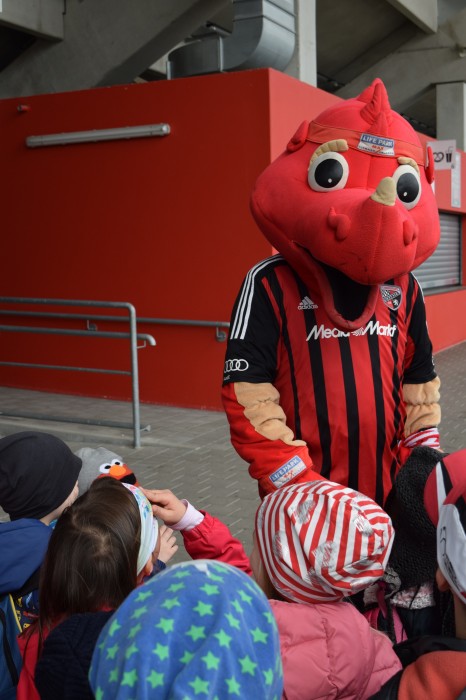Highlight des Projekts war wohl der Stadionbesuch im Audi Sportpark. Neben einer spannenden Führung durchs Stadion, trafen wir auch auf Schanzi, der allerlei Blödsinn mit uns machte.