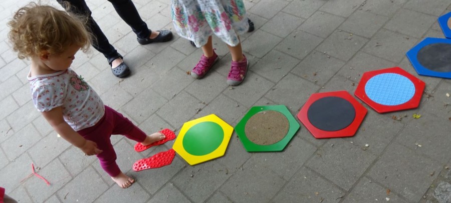 ... spürten die Fühlmäuse, auf Felldecken sitzend, wie sie mit Federn hauchzart gestreichelt und mit Igelbällen massiert wurden, tasteten mit Fußsohlen verschiedene Materialen und mit Armen und Händen in Fühlsäckchen.