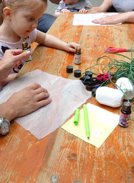 ... rochen und schnupperten die Nasenbären unter den Kindern und Eltern an Duftproben von Lavendel, verpackt als kleine Riechsäckchen.