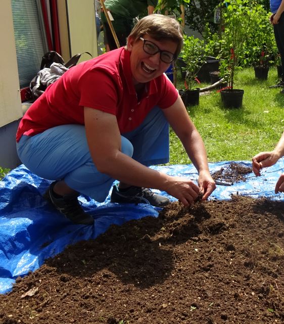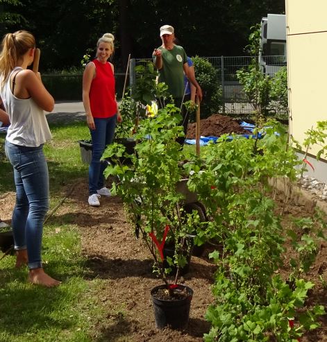 Unterstützt wurden wir dabei von einem Gärtner. Es wurden Johannisbeer- und Himbeersträucher sowie Monatserdbeeren, Heidelbeeren und Felsenbirnen gepflanzt.
