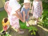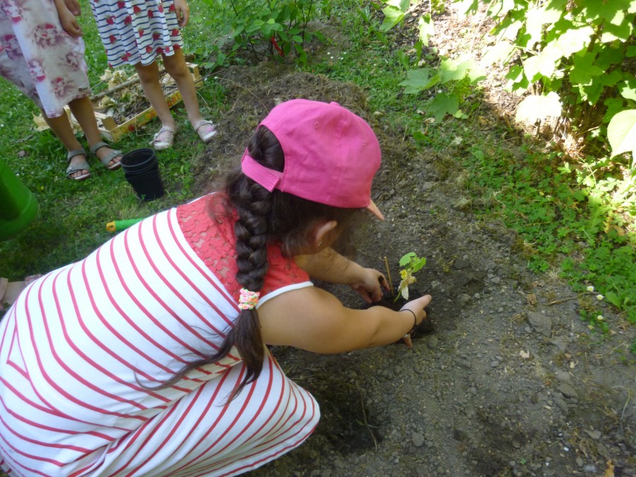 Hier haben wir einen Naschgarten angelegt. Es rückten tatkräftig Eltern an und auch einige Erzieherinnen bewiesen ihren grünen Daumen.