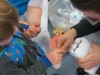 Dienstag, 20. Februar 2018Frau Dr. Bauermeister und Ihre Assistentin besuchten die Kinder im kinderGlück. Sie erklärten anhand der Handpuppe Leo, einem Löwen mit sehr gesunden Zähnen, welche Nahrungsmittel für die Zähne gesund sind und welche eher schädlich. Jedes Kind konnte mit einem Kratzer aus einem Styroporzahn Karies (angemalte Stellen) herauskratzen und mit einer Füllung verschließen (Knete). Zur Erinnerung bekam jedes Kind einen Zahnputzbecher, eine Zahnbürste und eine Zahnpasta geschenkt.