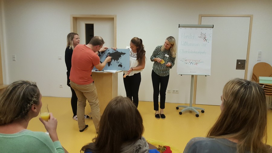 Donnerstag, 18. Oktober 2018Am Donnerstag, den 18. Oktober fand in unserem neuen kinderGlück die erste Elternbeiratswahlparty unter dem Motto „Herbstzauber" statt. Gewählt wurden 11 Elternbeiräte für das kommende KiTa-Jahr 2018/2019. Als Einstieg gestalteten die Eltern gemeinsam eine Weltkarte aus Glas, auf welcher sie ihren Geburtsort markierten. Die Weltkarte wird im Eingangsbereich des kinderGlücks aufgehängt und zeigt die Vielfalt der unterschiedlichen Kulturen in unserem „Haus der Sprache". Die kinderKüche der bürgerhilfe ingolstadt KiTa GmbH verköstigte die Eltern mit einer schmackhaften Kürbis-Ingwer-Suppe, passend zum Motto des Abends.