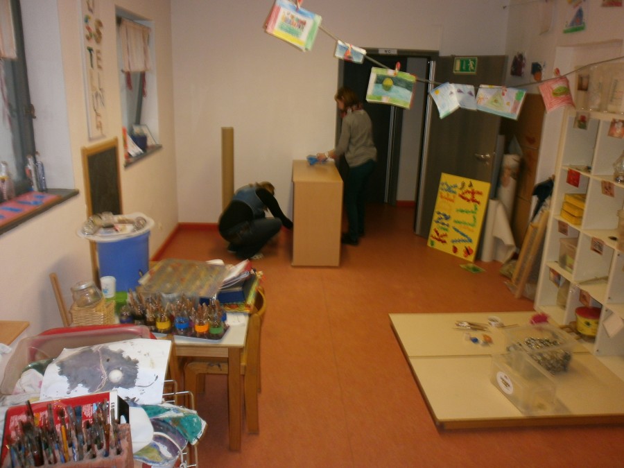 Anschließend teilte sich das Team in Kleingruppen auf und strukturierte die Lernwerkstätten um bzw. es entstanden