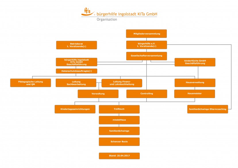 Der ehrenamtliche Vorstand fungiert im Sinne eines Aufsichtrats und legt die Leitlinien des bürgerhilfe ingolstadt e.V. und der bürgerhilfe ingolstadt KiTa GmbH fest.